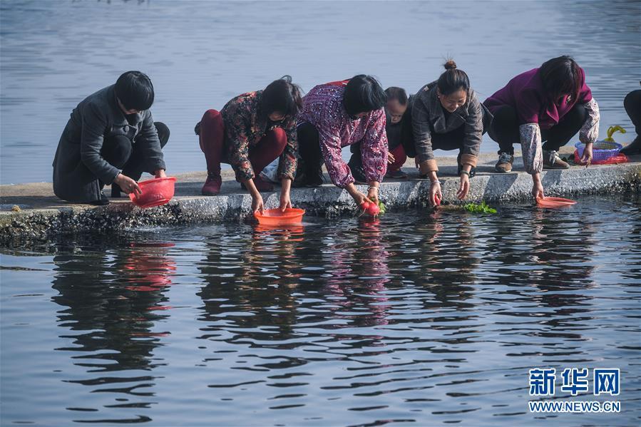 11月28日,月明村的村民在長(zhǎng)豐澗溪水邊洗菜淘米。近年來(lái)通過(guò)實(shí)施河長(zhǎng)制和水環(huán)境整治,長(zhǎng)興縣夾浦鎮(zhèn)月明村對(duì)長(zhǎng)豐澗進(jìn)行了清淤,對(duì)河兩岸綠化進(jìn)行了補(bǔ)植,修筑堰壩、蓄水引魚(yú),兩岸種植花草,開(kāi)辟河灘公園,實(shí)現(xiàn)了長(zhǎng)豐澗景美、岸綠、水清、河暢的目標(biāo)。