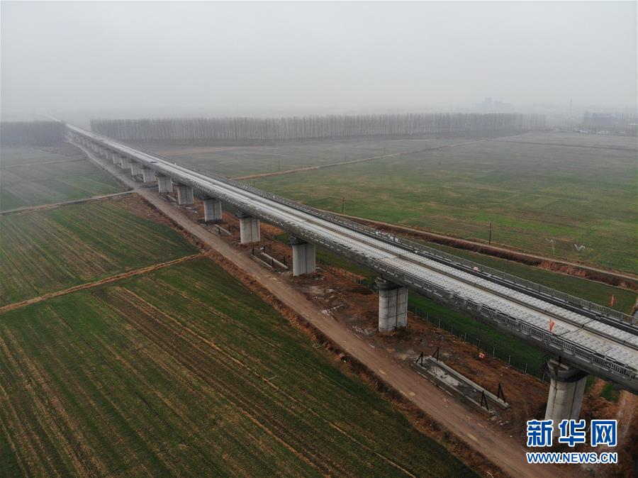 12月2日拍攝的魯南高鐵山東臨沂段(無(wú)人機(jī)拍攝)。