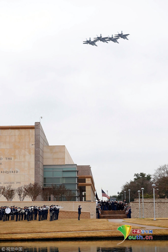 作為在德州舉行的葬禮的一部分,規(guī)??涨暗?1架F-18戰(zhàn)斗機(jī)以“悼念隊形”,向前海軍飛行員、第41任總統(tǒng)喬治·H·W·布什致敬。