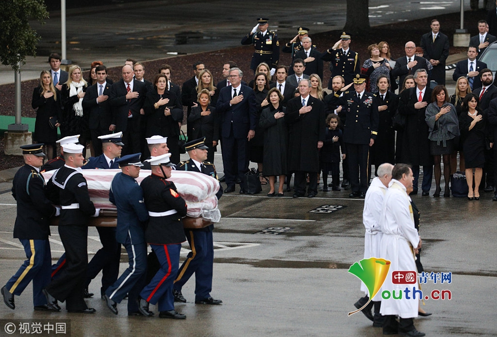 老布什靈柩下葬德州家族墓地 21架F18戰(zhàn)機編隊悼念