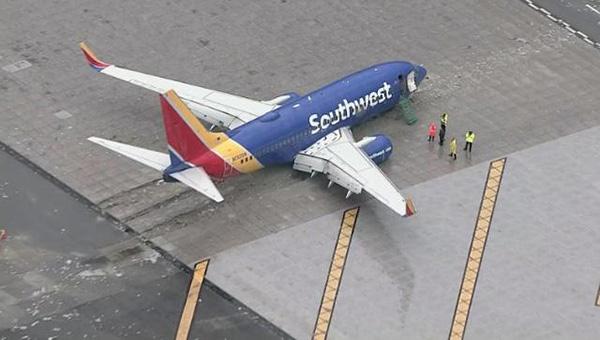 美國(guó)一架載117人航班降落時(shí)失控 沖出跑道撞上護(hù)欄