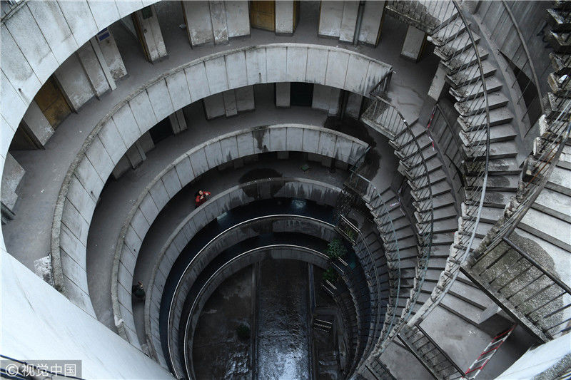 重慶洋人街景區(qū)內(nèi)的穿樓觀光索道吸引不少游客體驗。據(jù)悉,跨度長1000米的觀光索道將隨著洋人街的拆遷而搬離。中新社記者陳超 攝 2017年9月27日,重慶,南岸區(qū)某小區(qū)的“螺旋”停車場,從公路到車庫要下5層樓,司機(jī)需要轉(zhuǎn)無數(shù)個360度圈。圖片來源:視覺中國