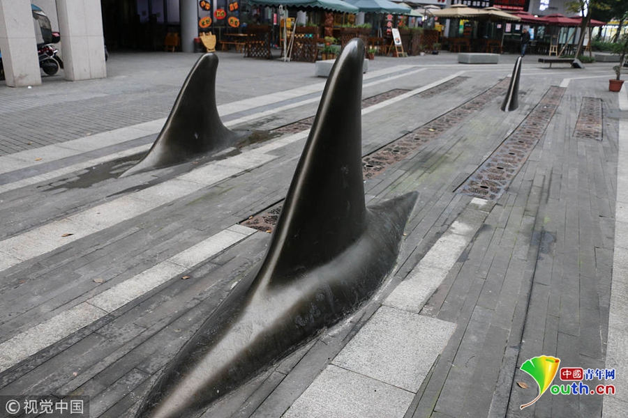 對于這種設(shè)計,不少市民覺得比較精巧的,遠(yuǎn)遠(yuǎn)地望去,就好像在海面上露出魚鰭的一群鯊魚,不僅可以防止被車輛占道,而且還有點裝飾的效果。