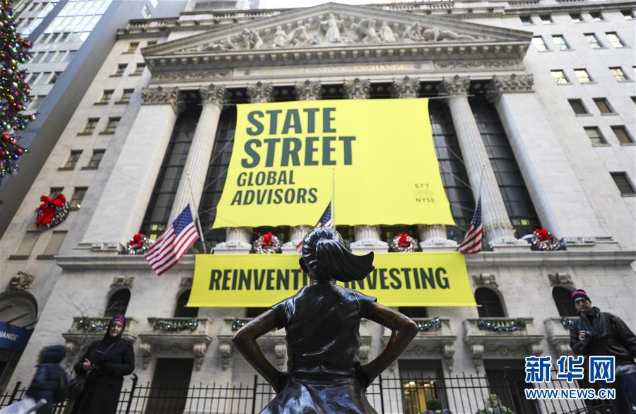這是12月10日在美國(guó)紐約證券交易所前拍攝的“無(wú)畏女孩”銅像。  新華社記者 王迎 攝