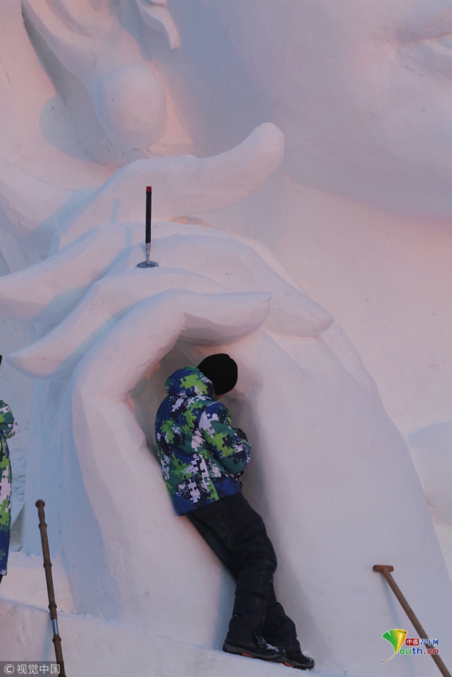 探秘哈爾濱太陽島雪博會:雪雕師精雕細(xì)刻建造忙