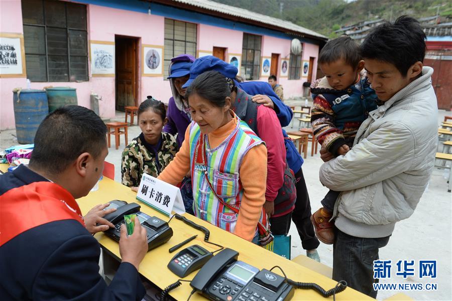 獨龍族群眾在辦理金融業(yè)務(2015年3月25日攝)。  新華社記者 胡超 攝