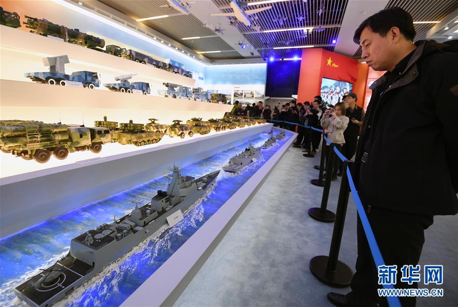 12月21日,觀眾在觀看老北京四合院微縮模型。
