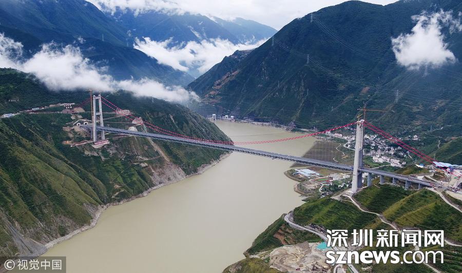 深圳新聞網(wǎng)訊 全長(zhǎng)1411米、跨徑1100m、總造價(jià)超過10億元,被譽(yù)為“川藏第一橋”的雅康高速瀘定大渡河興康特大橋路面施工完成,具備了通行能力。