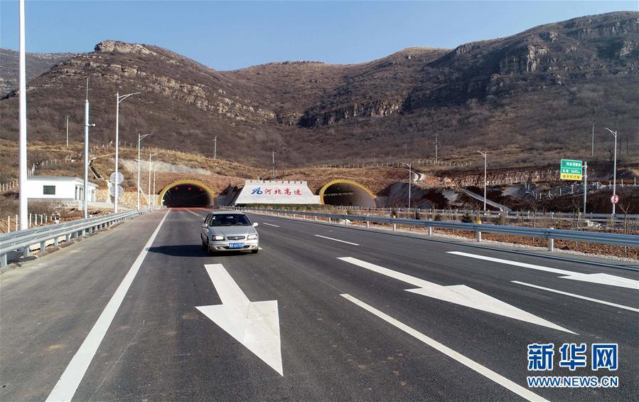 12月16日,一輛汽車行駛在京秦高速公路二期工程河北玉田境內(nèi)的鳳凰頂隧道路段(無人機拍攝)。 新華社記者楊世堯攝