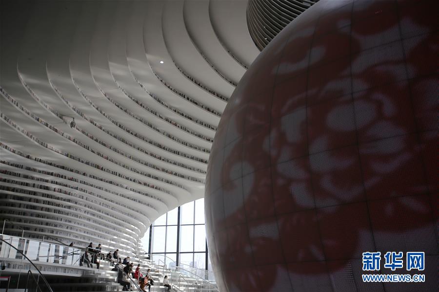 這是12月27日拍攝的天津?yàn)I海新區(qū)圖書館中庭。 濱海新區(qū)圖書館位于天津?yàn)I海文化中心,2017年10月1日正式開館,設(shè)計(jì)立意為“濱海之眼”和“書山有路勤為徑”。圖書館現(xiàn)有藏書60多萬冊,一年多來接待讀者約280萬人次,已成為濱海新區(qū)的文化“新地標(biāo)”。 新華社記者安希雅攝