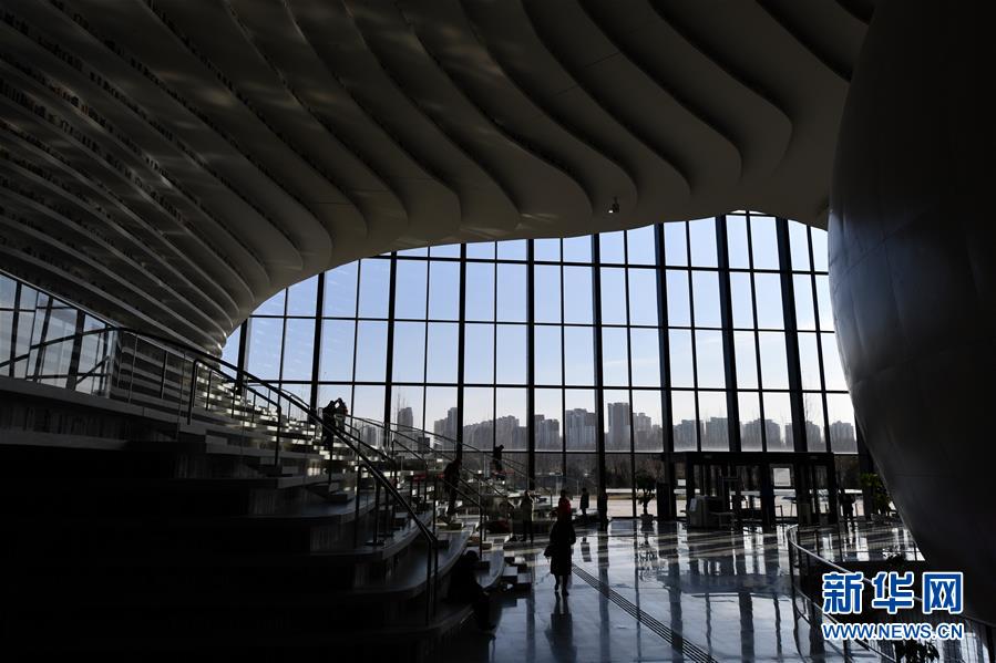 這是12月27日拍攝的天津?yàn)I海新區(qū)圖書(shū)館中庭。 濱海新區(qū)圖書(shū)館位于天津?yàn)I海文化中心,2017年10月1日正式開(kāi)館,設(shè)計(jì)立意為“濱海之眼”和“書(shū)山有路勤為徑”。圖書(shū)館現(xiàn)有藏書(shū)60多萬(wàn)冊(cè),一年多來(lái)接待讀者約280萬(wàn)人次,已成為濱海新區(qū)的文化“新地標(biāo)”。 新華社記者李然攝