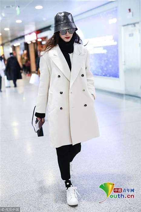 2018年12月27日, 唐嫣從北京飛往上?,F(xiàn)身機(jī)場。她身穿白色外套,戴黑色皮帽時髦max,低頭露幸福淺笑白到發(fā)光,獲粉絲送小禮物人氣爆棚。