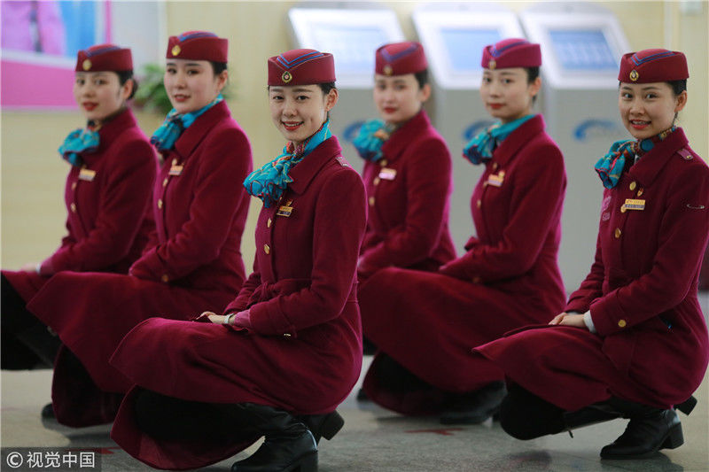 2018年12月27日,四川成都,為備戰(zhàn)即將開(kāi)通的成雅鐵路,中國(guó)鐵路成都局集團(tuán)有限公司成都客運(yùn)段動(dòng)車(chē)二隊(duì)對(duì)成雅動(dòng)車(chē)的乘務(wù)人員進(jìn)行理論、形體、服務(wù)禮儀等內(nèi)容的培訓(xùn)。