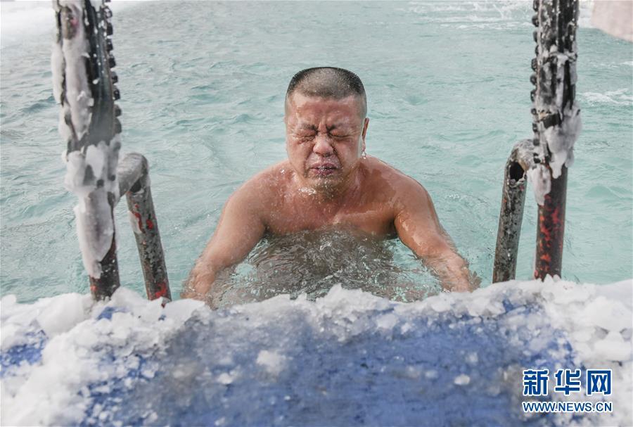 當(dāng)日,新疆烏魯木齊戶外氣溫接近零下20攝氏度,許多冬泳愛好者不懼嚴(yán)寒,來到烏魯木齊紅山游泳中心戶外泳池進行冬泳運動,鍛煉身體,磨練意志。