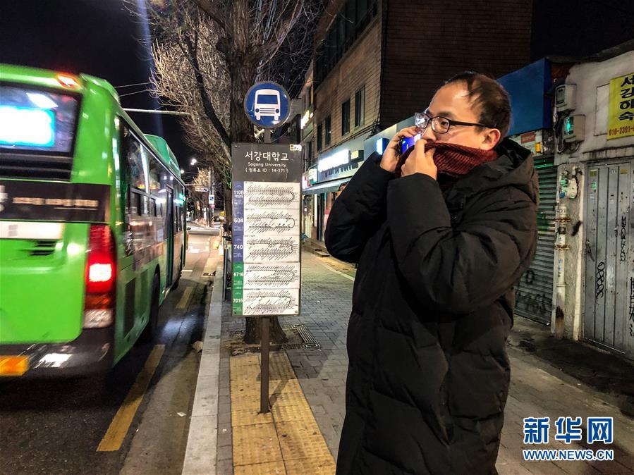 12月28日,一名行人在韓國首爾西江大學(xué)附近的一個(gè)公交站打電話。據(jù)韓國氣象部門28日消息,全國各地當(dāng)天迎來強(qiáng)寒潮,首爾地區(qū)體感溫度達(dá)零下19.3攝氏度,中部地區(qū)和南部地區(qū)已發(fā)布低溫預(yù)警。新華社記者 王婧嬙 攝