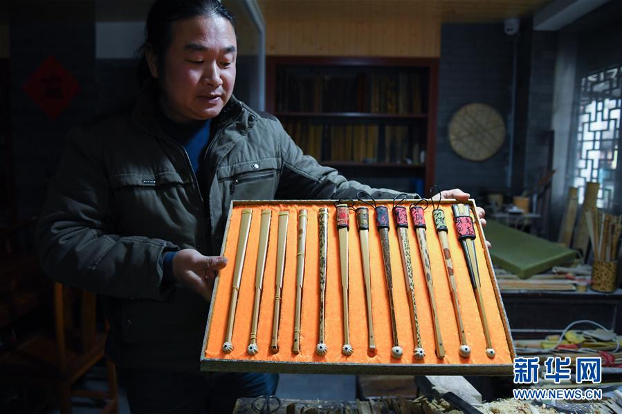 12月29日,在鄣吳鎮(zhèn)的老街上一家制扇工作室內(nèi),制扇藝人展示他制作的不同類型的扇骨。 當(dāng)日,“中國竹扇之鄉(xiāng)”——浙江省安吉縣鄣吳鎮(zhèn)舉辦傳統(tǒng)文化迎新年活動(dòng)。舉辦包括扇文化博覽會(huì)、扇面藝術(shù)展、制扇工藝展示及金石、拓印文化展示等活動(dòng),弘揚(yáng)中華優(yōu)秀傳統(tǒng)文化。 自上世紀(jì)七十年代以來,鄣吳鎮(zhèn)開始發(fā)展制扇產(chǎn)業(yè),現(xiàn)在該鎮(zhèn)有各類制扇企業(yè)80余家,制扇行業(yè)從業(yè)人員2000多人,年產(chǎn)值達(dá)2億多元。 新華社記者 徐昱攝