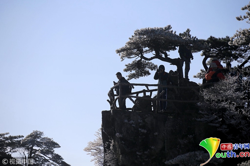 安徽黃山,受強(qiáng)冷空氣影響,氣溫突降,出現(xiàn)了四月陽春罕見的霧凇奇觀。