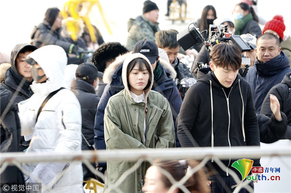 2019年1月9日,北京,鄧倫、馬思純現(xiàn)身后?;鶊?chǎng),騎冰車(chē)拍攝新劇《加油你是最棒的》。寒冷的北京,二人身著單薄的劇中服裝現(xiàn)身拍攝片場(chǎng),不顧嚴(yán)寒超敬業(yè)。