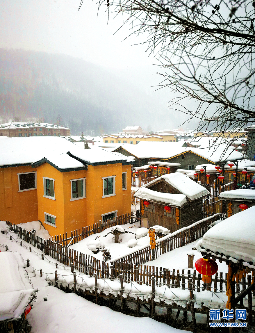 1月3日,燈光映照下的雪鄉(xiāng)一角。 新華網(wǎng)記者 張明宇 攝