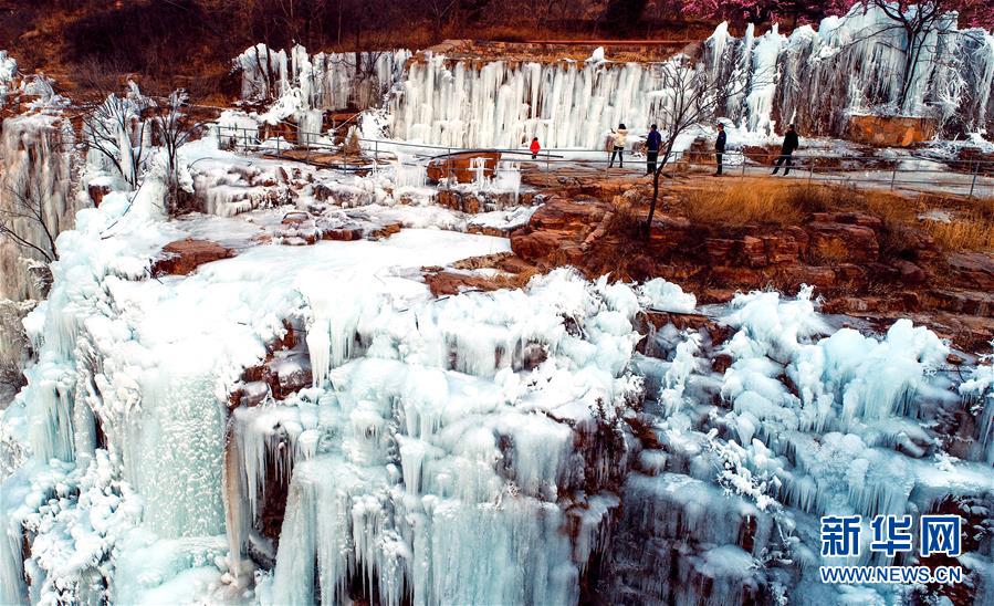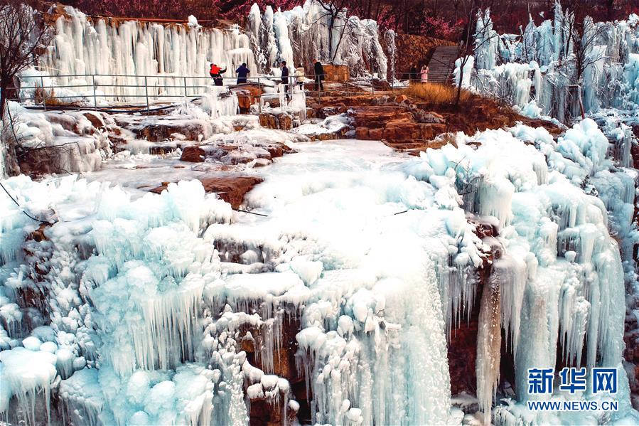 1月12日,游客在涉縣太行五指山景區(qū)觀賞冰瀑。新華社記者王曉攝