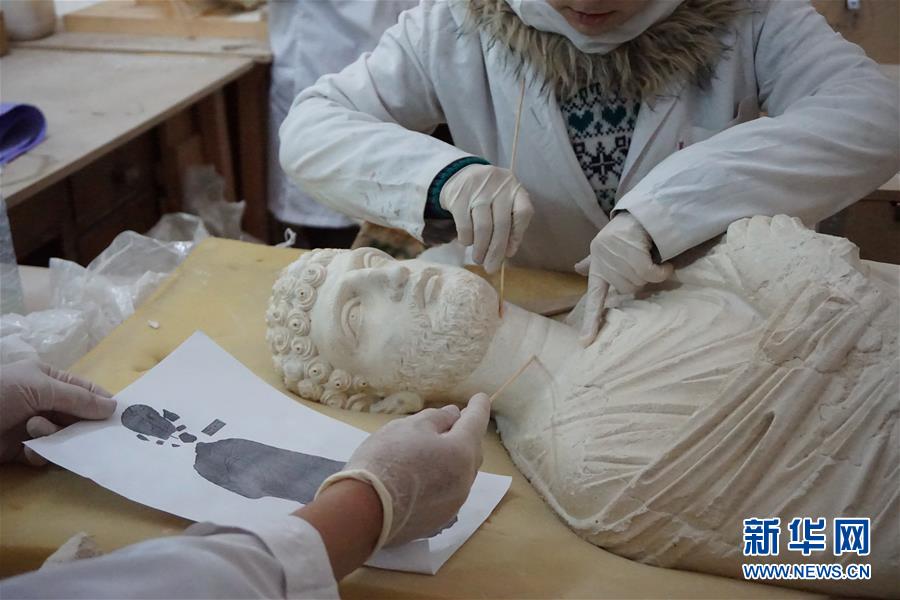 12月5日,在敘利亞首都大馬士革,文物修復(fù)小組成員在國家博物館內(nèi)修復(fù)來自巴爾米拉的受損雕像。 在敘利亞國家博物館展廳一角,文物修復(fù)師赫芭·朱馬正給一座受損的雕像“整容”。“我對這座雕像有特殊的感情,‘她’就像我的家人一樣?!敝祚R說,包括這座雕像在內(nèi),館內(nèi)大部分受損文物都來自她的家鄉(xiāng)巴爾米拉。這座敘利亞古城有2000多年的歷史,是一座古羅馬風(fēng)格的歷史遺址,1980年被聯(lián)合國教科文組織列入世界文化遺產(chǎn)名錄。過去數(shù)年間,極端組織“伊斯蘭國”先后兩次攻占巴爾米拉,不僅濫殺無辜,還大肆破壞遺跡文物。2017年3月,敘利亞政府軍重奪對巴爾米拉的控制權(quán),劫后余生的文物被分批運到首都大馬士革保存。數(shù)月前,國家博物館組建文物修復(fù)小組,朱馬也從巴爾米拉被調(diào)來參與修復(fù)工作。受人力、材料和技術(shù)所限,修復(fù)工程預(yù)計需要5至8年才能完成。朱馬說,很多雕塑碎成多塊,拼接十分耗時。盡管挑戰(zhàn)重重,但朱馬對修復(fù)過程絲毫不馬虎。“趕緊好起來吧,等修好了,我?guī)銈兓丶??!彼偸侨绱肃Z。 新華社記者汪健攝