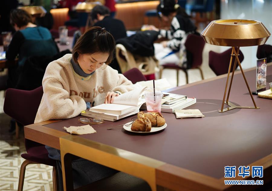 1月14日,讀者在西安高新區(qū)一家大型書(shū)店內(nèi)讀書(shū)休閑。