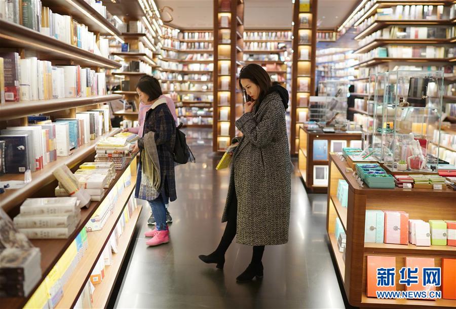 1月14日,讀者在西安高新區(qū)一家大型書店內(nèi)選購書籍。
