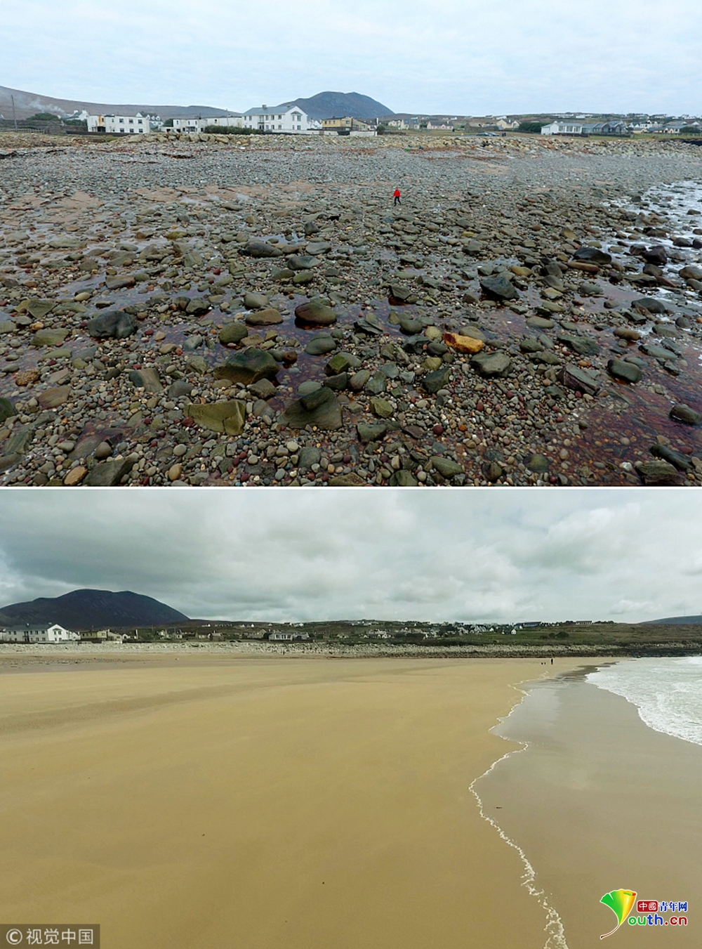 中國(guó)青年網(wǎng)2019年1月15日訊(具體拍攝時(shí)間不詳),愛(ài)爾蘭阿基爾島,Dooagh地帶的黃金海灘在1984年的一場(chǎng)暴風(fēng)雨后神秘消失,但在2017年4月,消失了33年的海灘又奇跡般地重現(xiàn)。