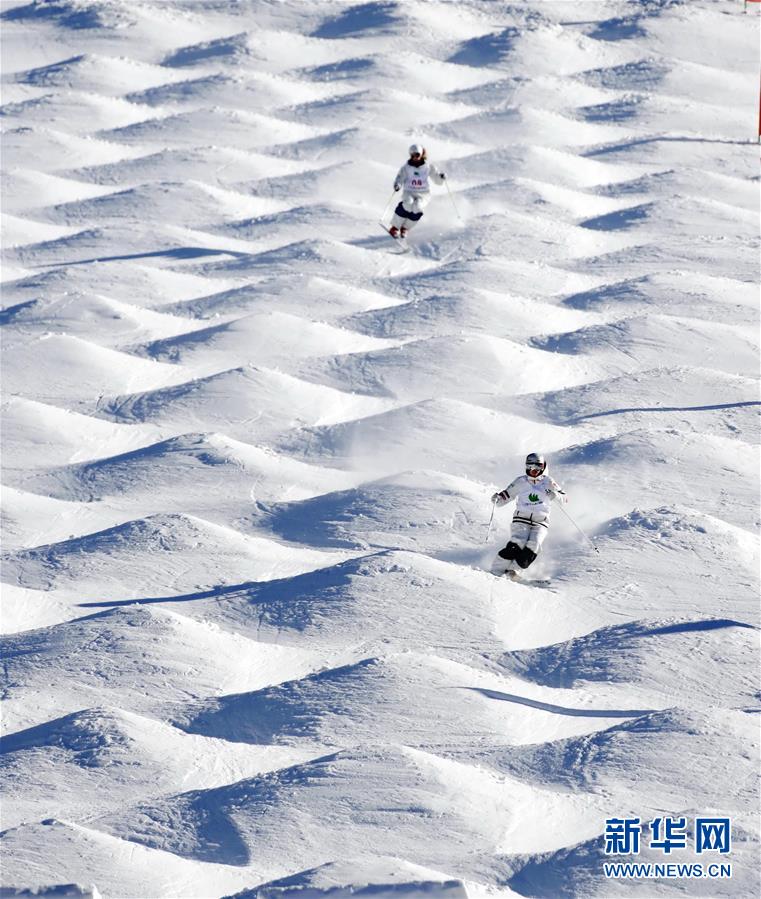 這是運(yùn)動(dòng)員在張家口市崇禮區(qū)太舞滑雪場(chǎng)參加自由式滑雪雪上技巧世界杯比賽(2018年12月16日攝)。