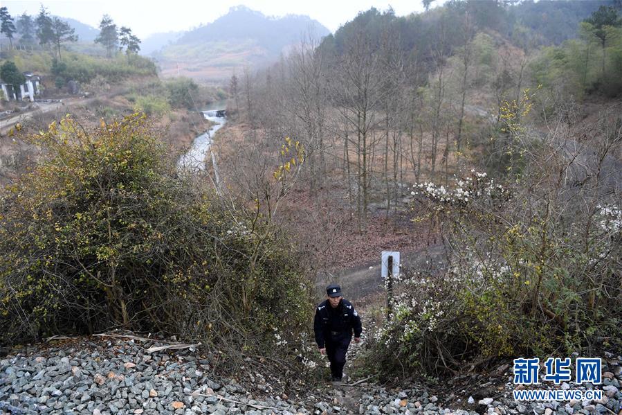 1月16日,汪茂才在巡線途中。 今年52歲的汪茂才是合肥鐵路公安處黃山站派出所歙縣警務室的一名線路民警,他所在的警務室負責皖南山區(qū)皖贛鐵路線約80公里范圍內(nèi)的線路安全。從警30年來,線路巡查、鐵路安全知識宣傳等是汪茂才的日常工作。多年來的徒步巡線,讓汪茂才練就了一雙快腿,十公里的路,汪茂才兩個小時就能走完。 汪茂才負責的鐵路沿線周邊村莊較多,很多房子都是沿鐵路線而建,有些村民為了圖方便,違規(guī)穿越鐵路線。加強對鐵路沿線居民的安全宣傳教育,成為汪茂才的一項重要工作,沿線村民的安全意識也越來越高。 對汪茂才這樣的線路民警來說,大多數(shù)時候都是“獨行俠”,“當線路民警就要耐得住寂寞,守得住孤獨,與大山為伴,與線路為友,盡己所能,為鐵路安全運行保駕護航?!蓖裘耪f。 新華社記者劉軍喜攝