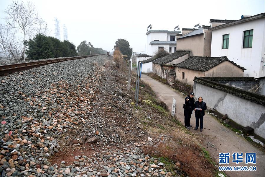 1月16日,汪茂才向鐵路沿線村民宣傳鐵路安全知識。 今年52歲的汪茂才是合肥鐵路公安處黃山站派出所歙縣警務室的一名線路民警,他所在的警務室負責皖南山區(qū)皖贛鐵路線約80公里范圍內(nèi)的線路安全。從警30年來,線路巡查、鐵路安全知識宣傳等是汪茂才的日常工作。多年來的徒步巡線,讓汪茂才練就了一雙快腿,十公里的路,汪茂才兩個小時就能走完。 汪茂才負責的鐵路沿線周邊村莊較多,很多房子都是沿鐵路線而建,有些村民為了圖方便,違規(guī)穿越鐵路線。加強對鐵路沿線居民的安全宣傳教育,成為汪茂才的一項重要工作,沿線村民的安全意識也越來越高。 對汪茂才這樣的線路民警來說,大多數(shù)時候都是“獨行俠”,“當線路民警就要耐得住寂寞,守得住孤獨,與大山為伴,與線路為友,盡己所能,為鐵路安全運行保駕護航?!蓖裘耪f。 新華社記者劉軍喜攝