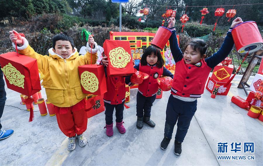 1月16日,孩子們?yōu)樾绿链宕迕癖硌輦鹘y(tǒng)非遺項目——下箬馬燈。下箬馬燈是發(fā)源于長興縣的民間舞蹈,距今已有1000多年歷史。 臨近春節(jié),浙江省長興縣開發(fā)區(qū)中心幼兒園的老師和孩子們來到長興縣太湖街道下屬的新塘村,為村民表演文藝節(jié)目,用喜慶的傳統(tǒng)舞蹈營造節(jié)日氣氛。另外孩子們還用紙盒、瓶子、彩色包裝紙等廢舊物品制作了環(huán)?;?,送給村民,倡導低碳環(huán)保的節(jié)日新風。 新華社記者 徐昱 攝