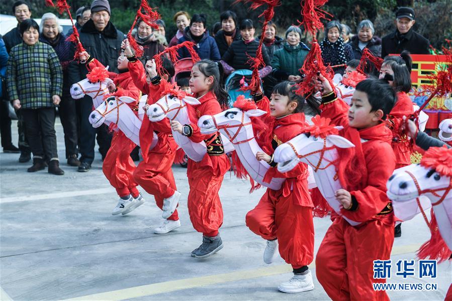 1月16日,孩子們?yōu)樾绿链宕迕癖硌輦鹘y(tǒng)非遺項目——下箬馬燈。下箬馬燈是發(fā)源于長興縣的民間舞蹈,距今已有1000多年歷史。 臨近春節(jié),浙江省長興縣開發(fā)區(qū)中心幼兒園的老師和孩子們來到長興縣太湖街道下屬的新塘村,為村民表演文藝節(jié)目,用喜慶的傳統(tǒng)舞蹈營造節(jié)日氣氛。另外孩子們還用紙盒、瓶子、彩色包裝紙等廢舊物品制作了環(huán)?;?,送給村民,倡導(dǎo)低碳環(huán)保的節(jié)日新風。 新華社記者 徐昱 攝