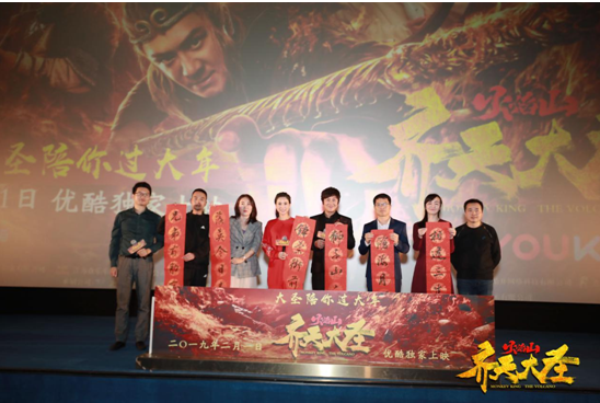 由于《齊天大圣之火焰山》的上線時(shí)間正巧是在春節(jié)假期前后,是名副其實(shí)的“春節(jié)檔”。因此,在發(fā)布會(huì)現(xiàn)場(chǎng),主持人引領(lǐng)現(xiàn)場(chǎng)觀眾為影片《齊天大圣之火焰山》加油助威,喊出了“大圣陪你過(guò)大年”的口號(hào)?,F(xiàn)場(chǎng)陳浩民及李若彤在觀眾們的歡呼聲中,與大家一起和影留念,并在現(xiàn)場(chǎng)為觀眾和粉絲朋友們派發(fā)了小禮品。作為春節(jié)檔上線的網(wǎng)絡(luò)電影,《齊天大圣之火焰山》在一定程度上有著相當(dāng)深刻的行業(yè)意義,此次發(fā)布會(huì)也為影片的定檔上線喝足了彩頭。