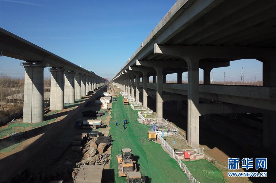 這是建設(shè)中的北京大興國際機(jī)場高速公路和北京軌道交通新機(jī)場線(2018年12月29日無人機(jī)拍攝)。新華社記者 鞠煥宗 攝