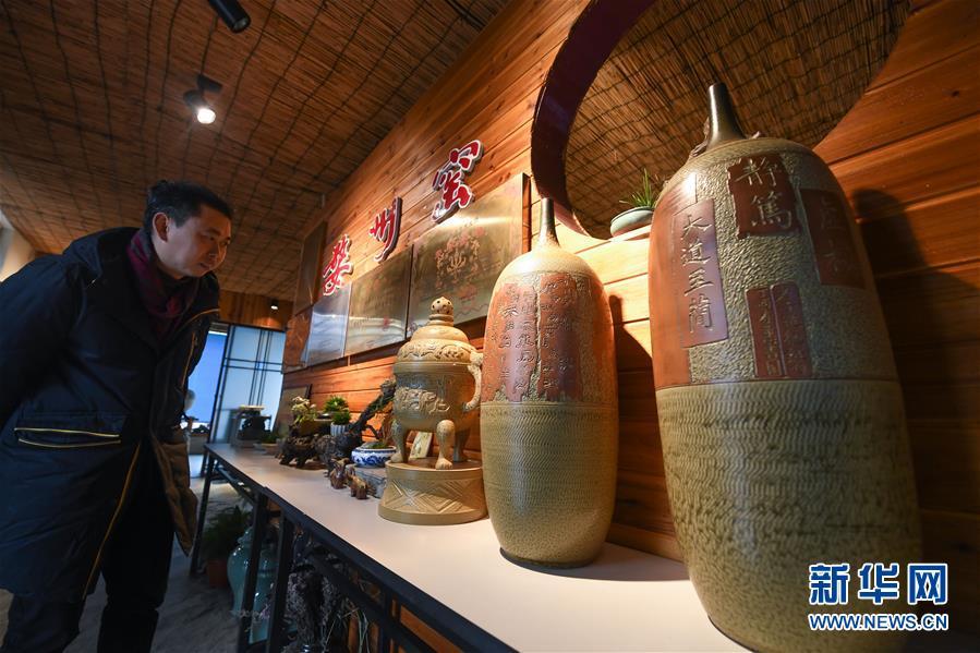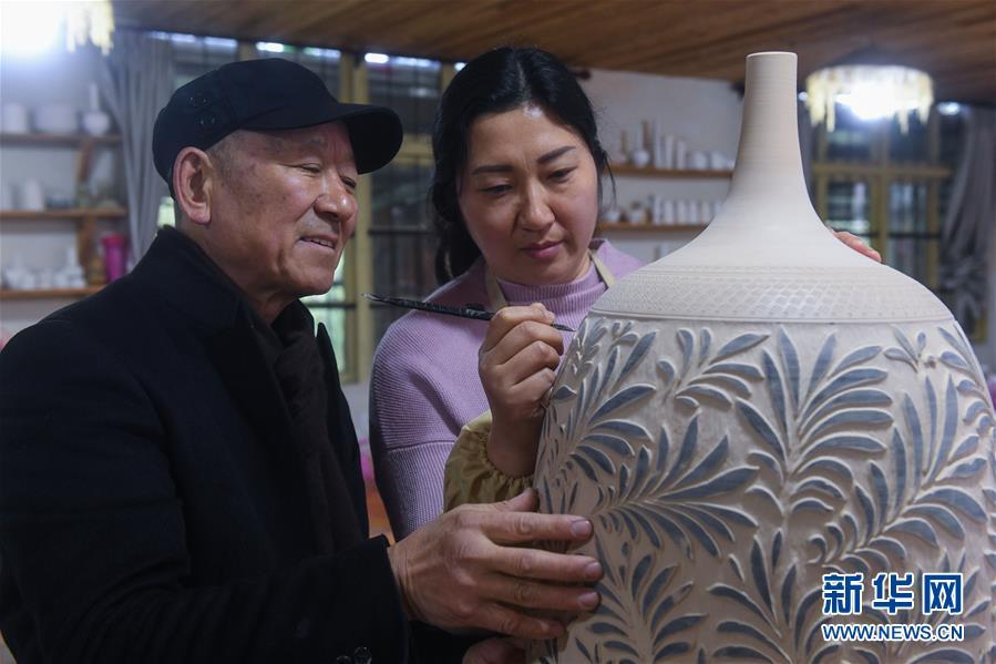2月16日,陳新華在工作室中查看準備進行燒制的素坯。新華社記者 徐昱 攝