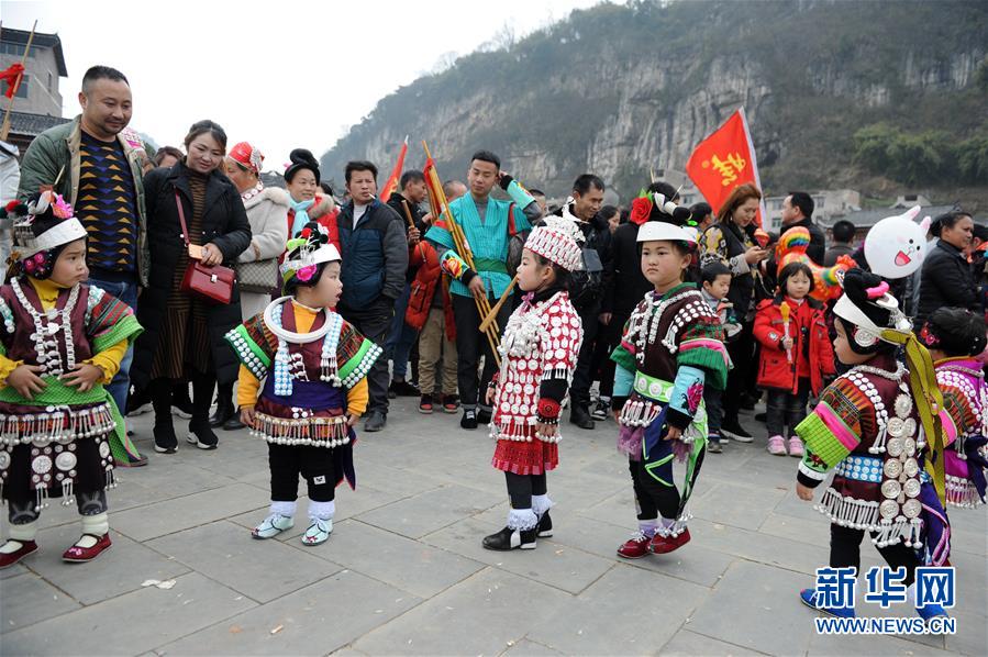 2月24日,在貴州省凱里市舟溪鎮(zhèn),苗族小姑娘身著盛裝跳蘆笙舞。 當日,在貴州省黔東南苗族侗族自治州凱里市舟溪鎮(zhèn),來自各地的苗族群眾身著節(jié)日盛裝,歡聚在古老的“甘囊香”蘆笙堂,男子吹奏起蘆笙,姑娘和孩子們跳起蘆笙舞,歡度新春,祈求風(fēng)調(diào)雨順、五谷豐登,青年男女也借此良日尋覓意中人。  “甘囊香”是苗語音譯,意思為“河流的下游,神仙匯聚的地方”?!案誓蚁恪碧J笙會是貴州規(guī)模最大、最古樸的苗族蘆笙會之一。  新華社記者楊文斌攝