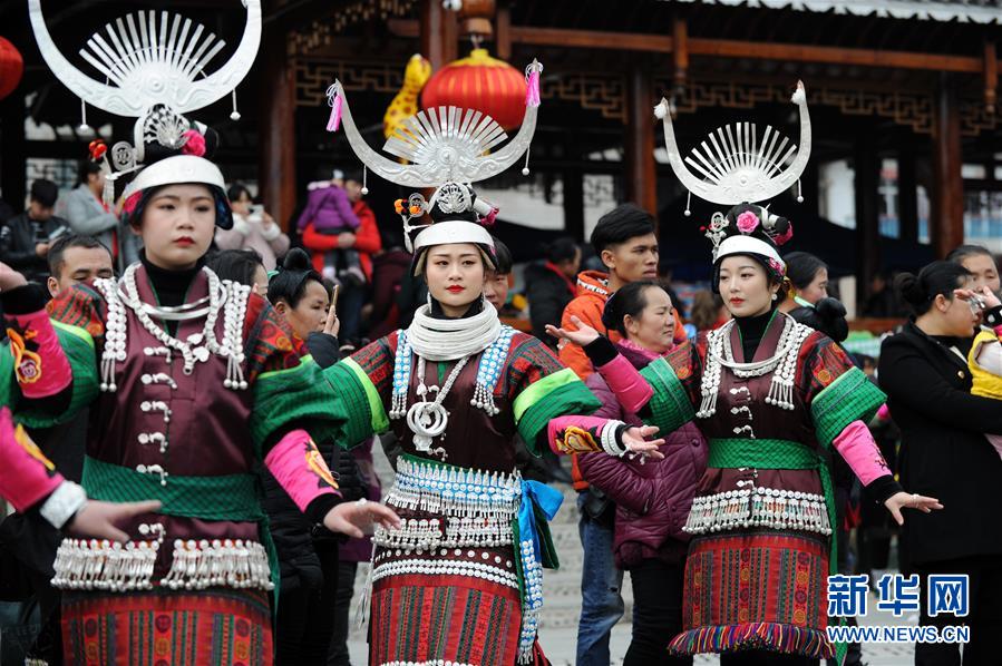 2月24日,在貴州省凱里市舟溪鎮(zhèn),苗族姑娘身著盛裝跳蘆笙舞。  當(dāng)日,在貴州省黔東南苗族侗族自治州凱里市舟溪鎮(zhèn),來(lái)自各地的苗族群眾身著節(jié)日盛裝,歡聚在古老的“甘囊香”蘆笙堂,男子吹奏起蘆笙,姑娘和孩子們跳起蘆笙舞,歡度新春,祈求風(fēng)調(diào)雨順、五谷豐登,青年男女也借此良日尋覓意中人。  “甘囊香”是苗語(yǔ)音譯,意思為“河流的下游,神仙匯聚的地方”?!案誓蚁恪碧J笙會(huì)是貴州規(guī)模最大、最古樸的苗族蘆笙會(huì)之一。  新華社記者楊文斌攝