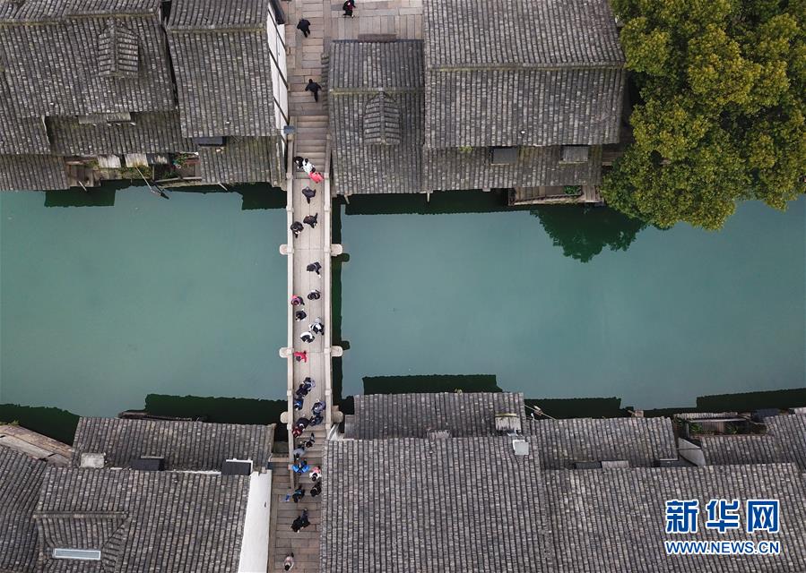 2月25日,游人在烏鎮(zhèn)游覽觀光(無人機(jī)拍攝)。 隨著氣溫升高,浙江省桐鄉(xiāng)市烏鎮(zhèn)景區(qū)春意萌動。 新華社記者翁忻旸攝