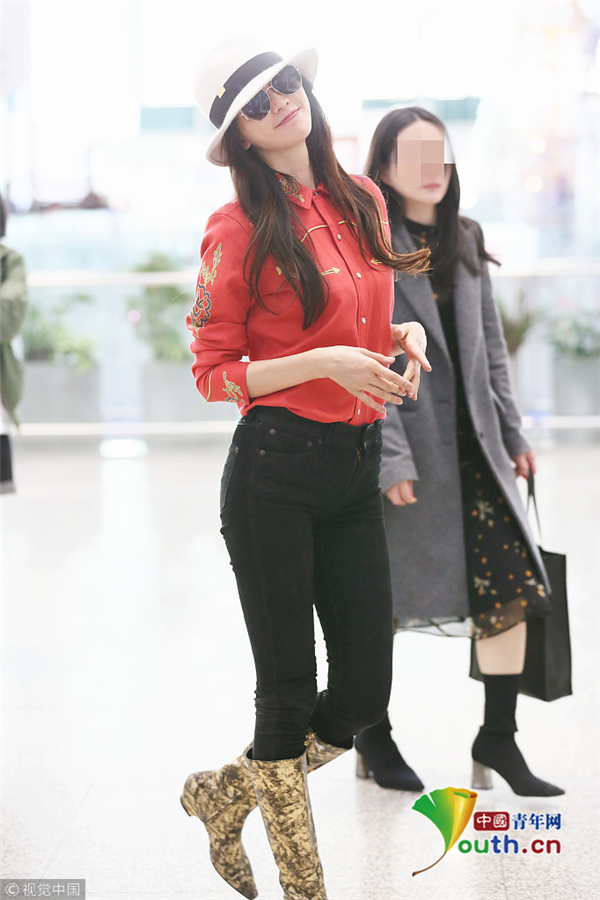 林志玲穿長(zhǎng)款黑皮衣踩筒靴 涂粉唇完美駕馭芭比粉
