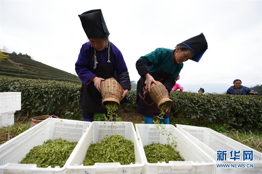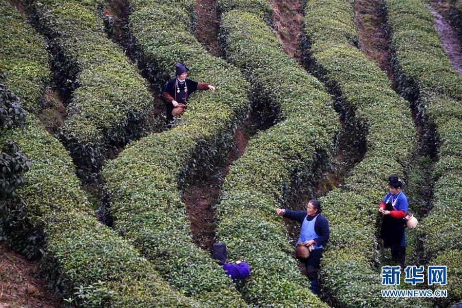 近日,隨著氣溫回升,貴州省黔東南苗族侗族自治州丹寨縣“扶貧茶園”的春茶陸續(xù)進入采摘期。 2018年以來,丹寨縣創(chuàng)新產業(yè)扶貧模式,采取社會公眾線上認領茶園,茶園聘請當地貧困戶務工的“扶貧茶園”模式,為該縣貧困戶創(chuàng)造茶園管理、采茶、制茶等就業(yè)機會,幫助貧困戶增收。 新華社記者 楊文斌 攝