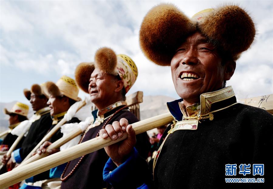 3月16日,山南市乃東區(qū)克松社區(qū)居民在開耕儀式上。 當(dāng)日,西藏各地男女老幼身著節(jié)日盛裝,駕著一輛輛由彩旗、花朵裝扮一新的拖拉機(jī),涌向待墾的農(nóng)田,載歌載舞迎來一年一度的開耕儀式。 新華社記者 普布扎西 攝