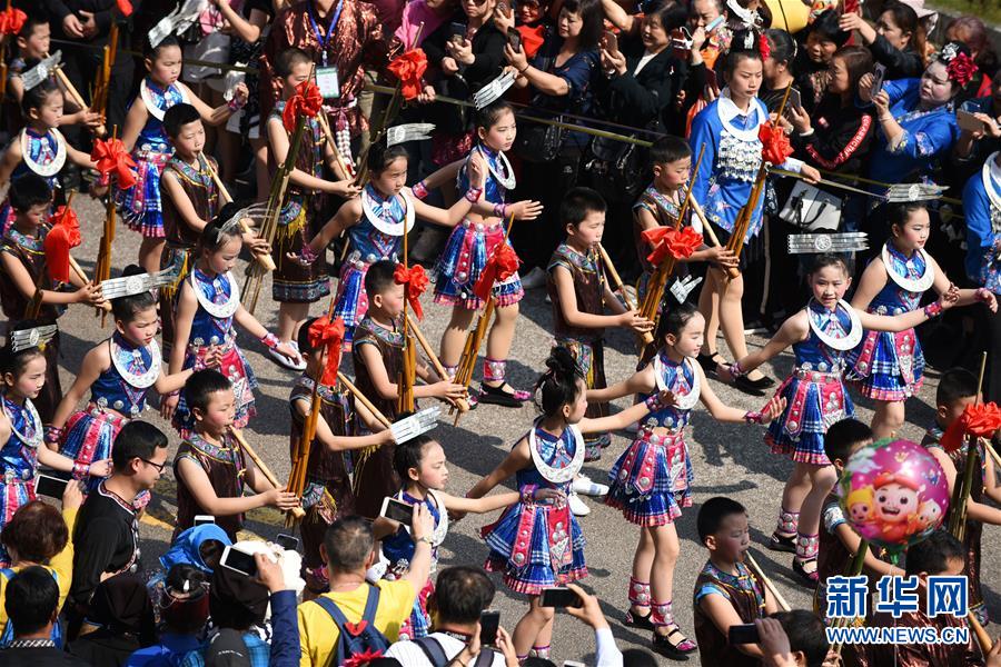 4月18日,臺江縣苗族群眾參加盛裝游演活動。 當(dāng)日,貴州省黔東南苗族侗族自治州臺江縣迎來一年一度的苗族姊妹節(jié)。節(jié)日期間將舉行苗族盛裝游演、千人長桌宴、千人游方體驗、苗族手工創(chuàng)意大賽等一系列活動。 姊妹節(jié)是臺江縣苗族同胞的傳統(tǒng)節(jié)日,2006年被列入第一批國家級非物質(zhì)文化遺產(chǎn)名錄。 新華社記者 楊文斌 攝