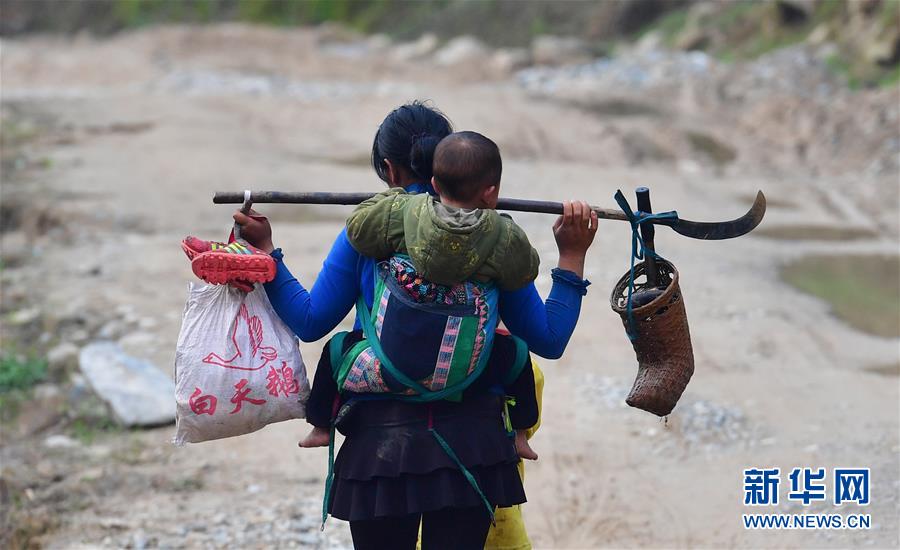 在黔桂烏英苗寨,村民勞作歸來(lái)(3月26日攝)。 新華社記者 黃孝邦 攝