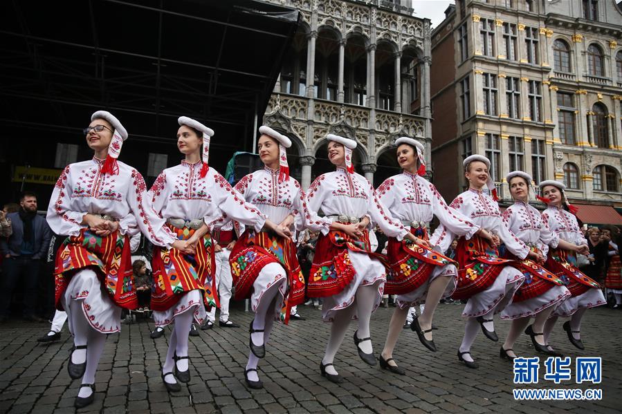 4月28日,在比利時布魯塞爾大廣場,演員表演保加利亞的民族舞蹈。 當(dāng)日,來自歐洲多個國家的表演者在比利時布魯塞爾大廣場載歌載舞,慶祝為期五天的2019年巴爾干文化藝術(shù)節(jié)圓滿落幕。該文化藝術(shù)節(jié)旨在用音樂、舞蹈、文學(xué)、街頭藝術(shù)等方式向公眾展現(xiàn)東南歐巴爾干半島地區(qū)的民族文化風(fēng)情。 新華社記者鄭煥松攝