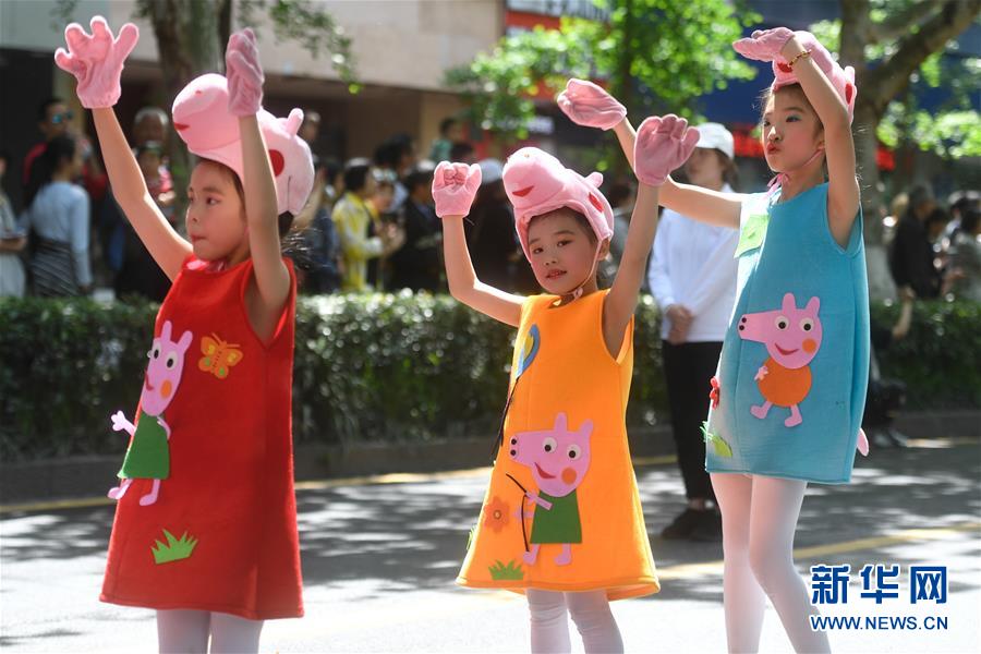 5月4日,扮演成“小豬佩奇”的演員在巡游隊(duì)伍中表演。當(dāng)日,第十五屆中國國際動(dòng)漫節(jié)彩車巡游活動(dòng)在浙江杭州南宋御街中北創(chuàng)意街區(qū)舉行。巡游表演隊(duì)伍約500米長,由4輛大型動(dòng)漫彩車、1輛小火車及400多名演員組成。新華社記者 黃宗治 攝