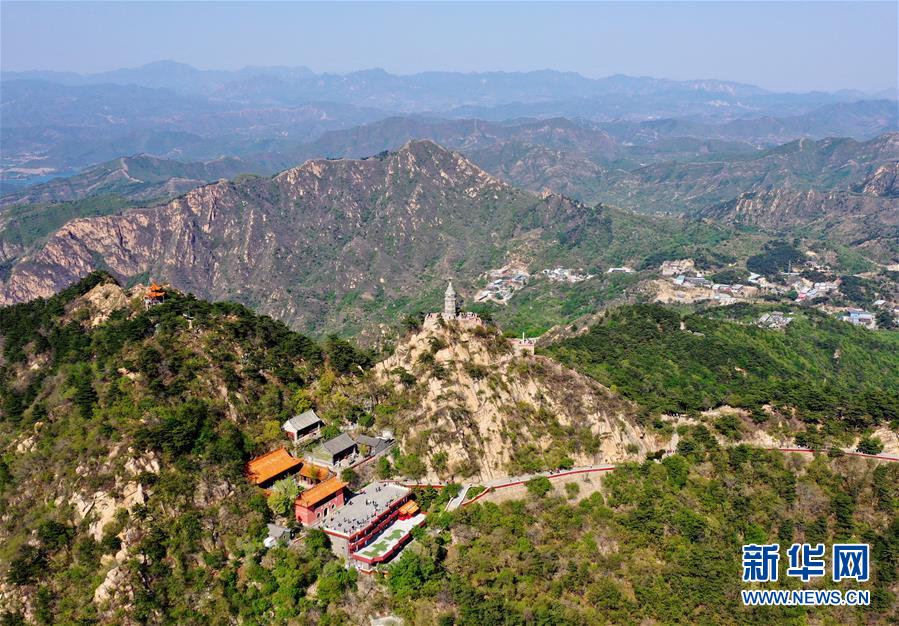 定光佛舍利塔矗立在盤山主峰掛月峰上(5月2日無人機攝)。新華社記者 岳月偉 攝