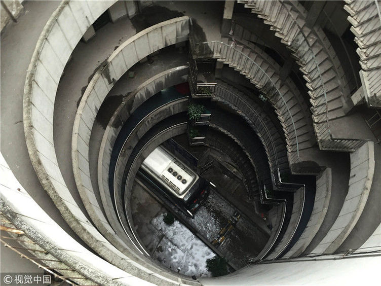 探秘重慶魔幻八層圓筒型轉轉樓 公交車穿其而過