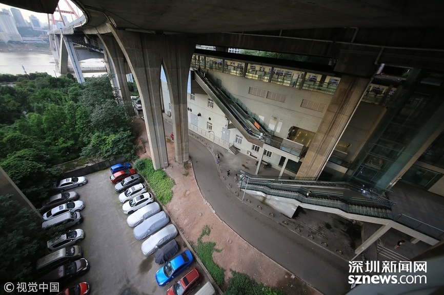 深圳新聞網訊 2018年5月29日,重慶,魔幻重慶又雙叒叕放大招!還有一個獨特的亮點,重慶軌道交通3號線銅元局站,出口由一段長梯銜接上方立交橋和下方的路面,與全國最高城市立交橋蘇家壩立交組成了獨特風景,許多游客專門趕來拍照。