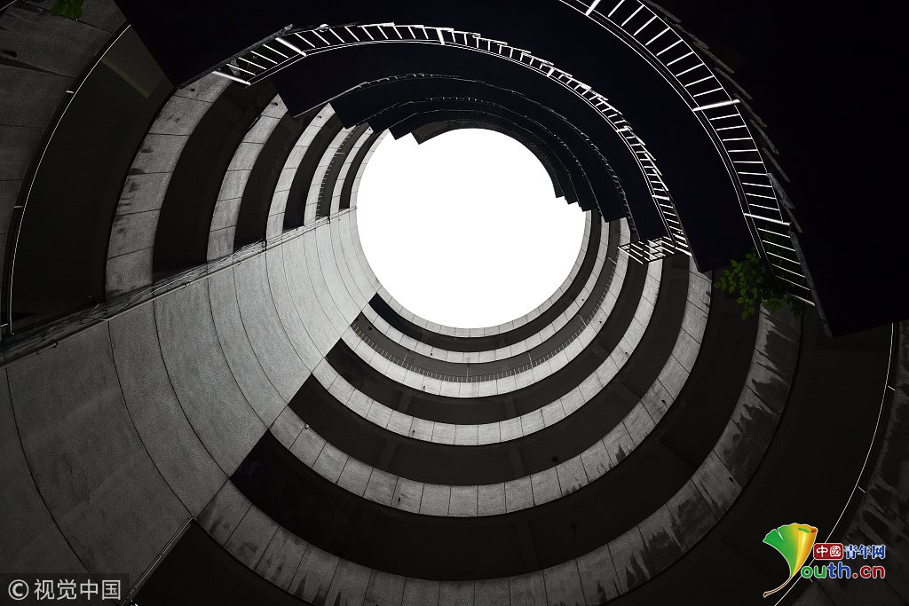 2018年12月11日,重慶紅旗河溝汽車站辦公大樓。八層的圓筒型轉轉樓,站在樓里往上望,可以看見碗口大的天空。圖片作者:尋常